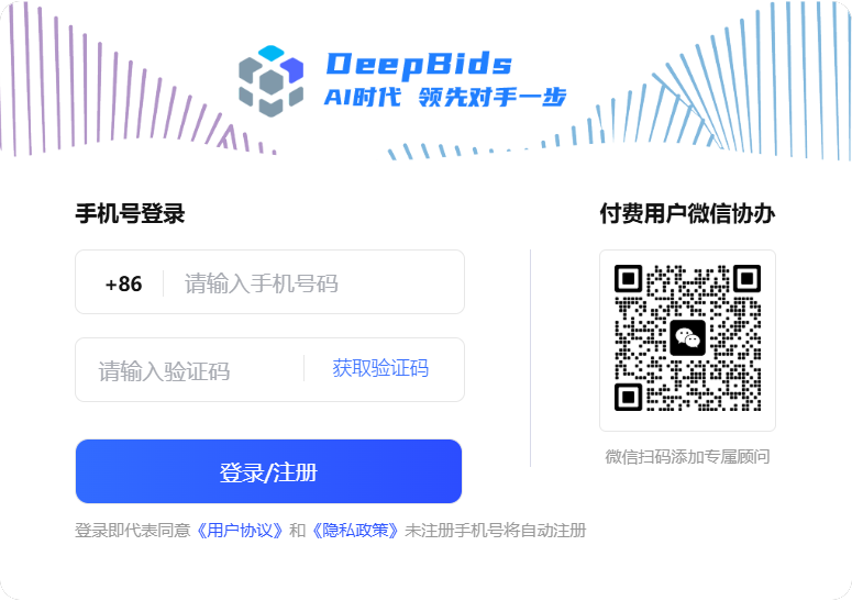 在任意页面顶端点击【登录/注册】按钮,都可打开下图窗口,填入手机号用户即可完成注册,已注册用户将自动登录。