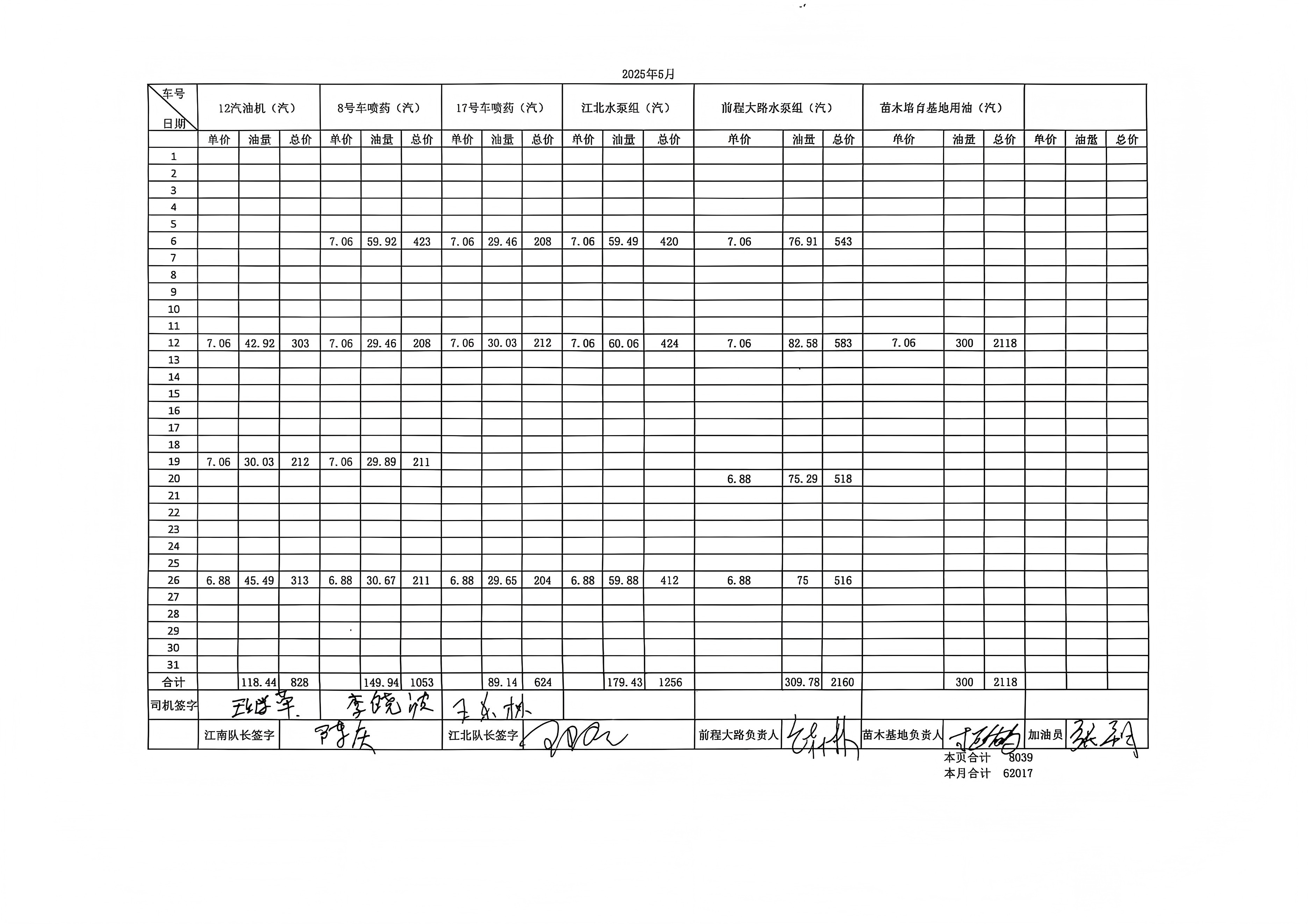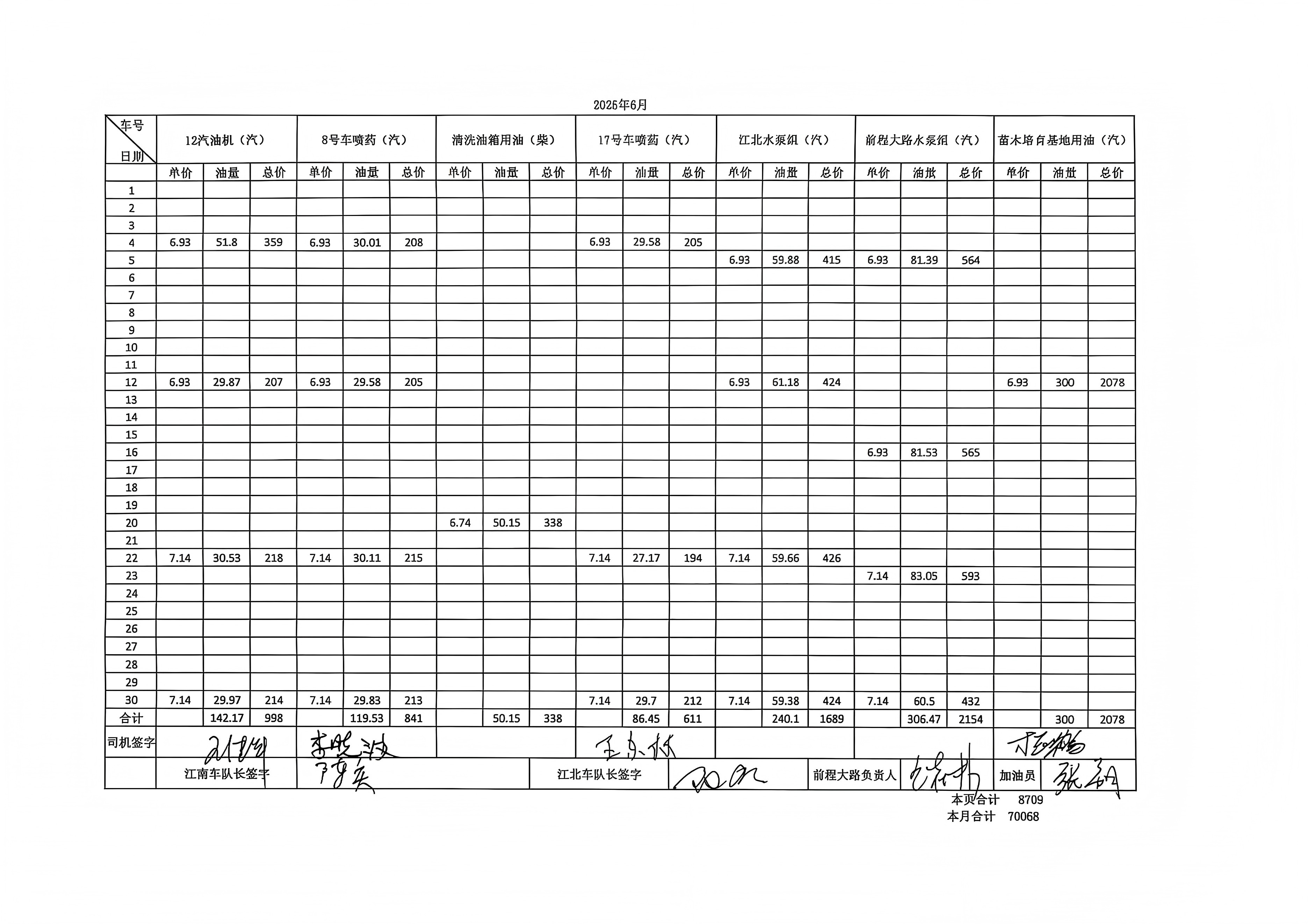 | 8 | 大车燃油(6月) | 升 | 8442 | 59131 | 车辆日常燃油、燃气 | 车辆日常燃油、燃气 | |