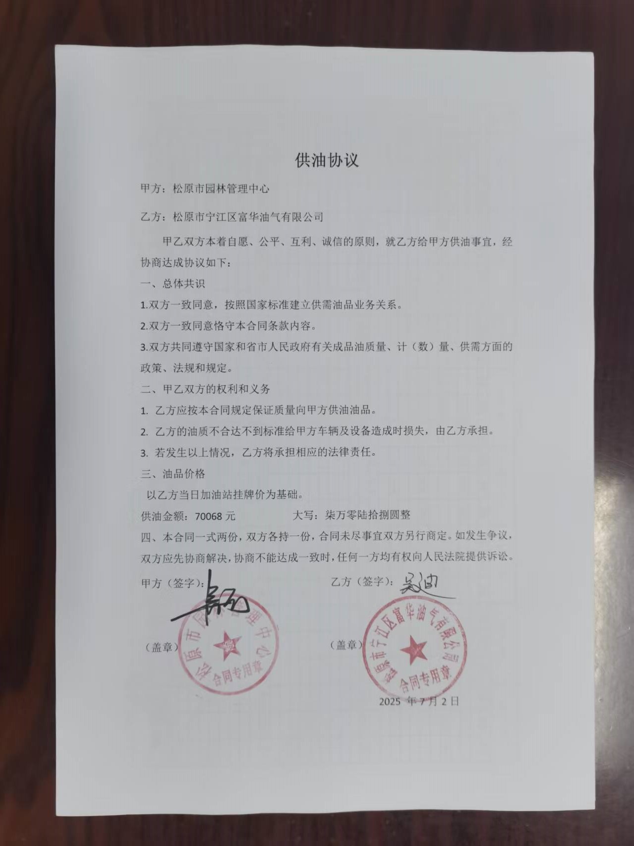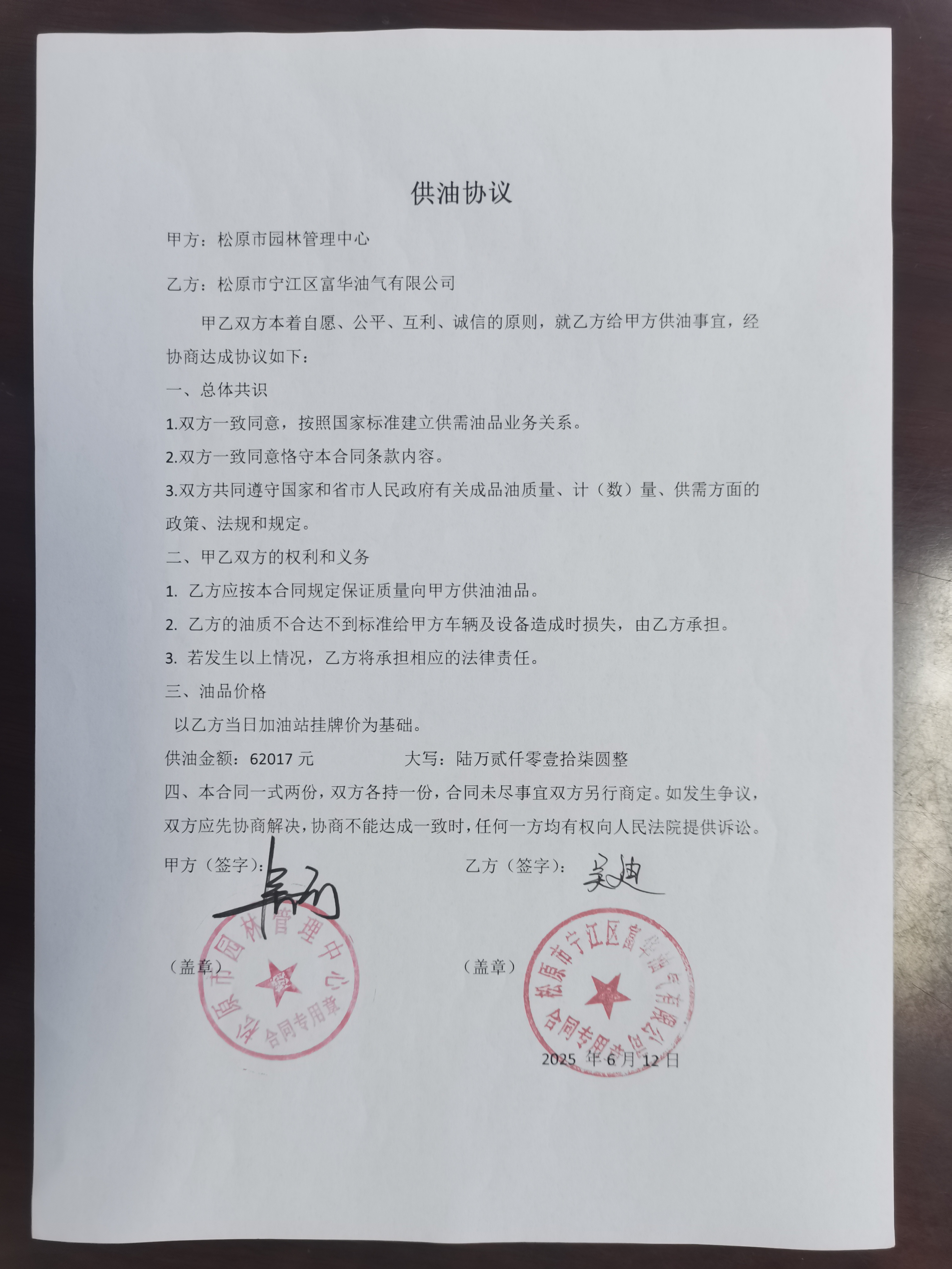 松原市园林管理中心定点服务结果公告(二季度车辆燃油、燃气)